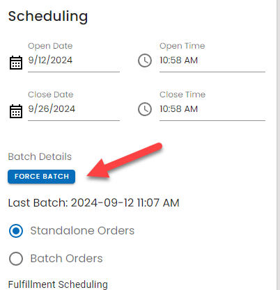 2) Under Scheduling - Batch Details, you can click FORCE BATCH.