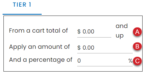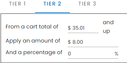 Be sure to change the "From a cart total of..." setting to be just above the previous tier. See example below